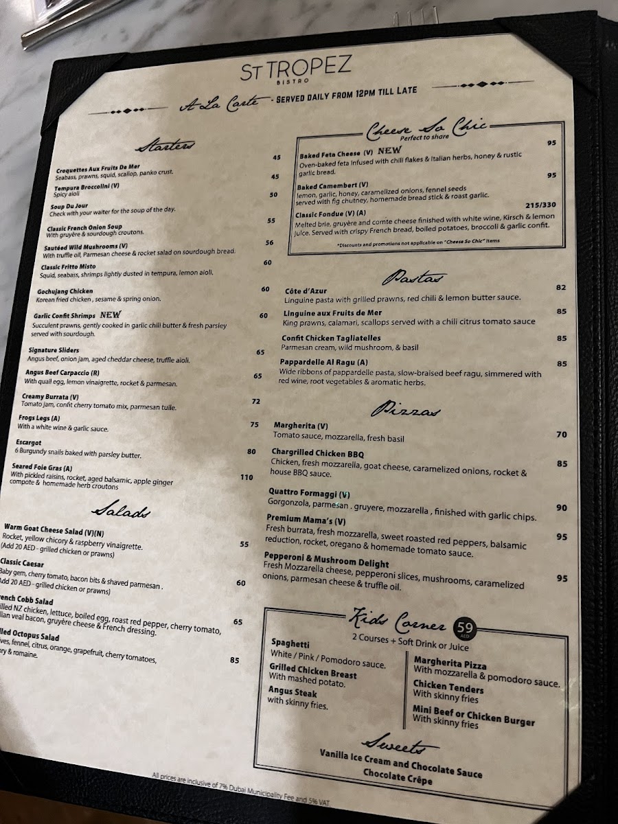 The St Tropez Bistro Menu offers a delightful mix of Mediterranean flavors, right in the heart of Dubai. Located on the first floor of the Mall of Emirates, West End, and just a stone’s throw from Ski Dubai, this spot invites you to indulge in a unique dining experience. Whether you’re in the mood for something light and refreshing or craving a hearty meal, the menu has something for every palate. Fresh salads, mouthwatering grilled meats, and delicious seafood options are all expertly prepared with the finest ingredients.